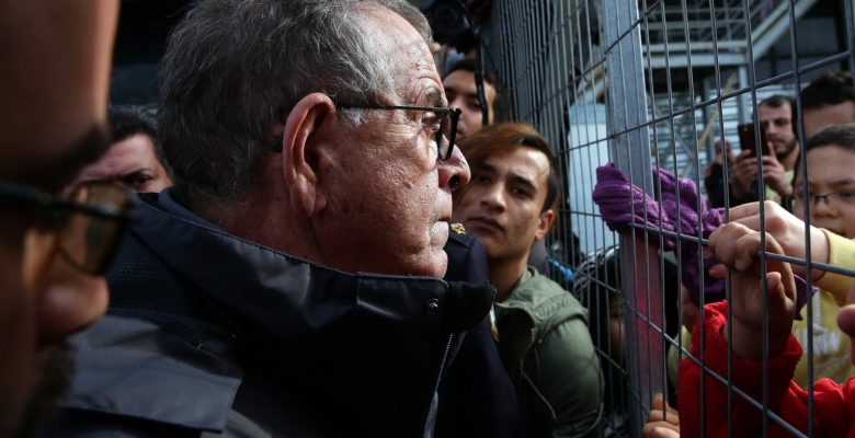 Συγκεντρωμένοι κάτοικοι του Χαλκειούς, όπου είναι εγκατεστημένο το hotspot, και όχι μόνο, κατέλαβαν την αίθουσα αναχωρήσεων, υψώνοντας πανό και φωνάζοντας συνθήματα κατά του ίδιου ζητώντας την παραίτησή του.