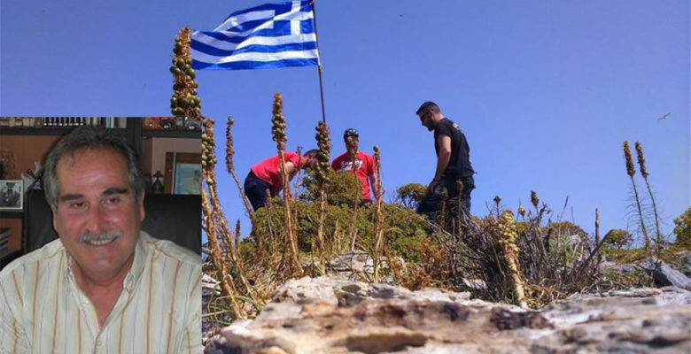 Παράλληλα μετέβη στο σημείο ώστε να επιβεβαιώσει αν η σημαία βρίσκεται ακόμη πάνω στη βραχονησίδα και όπως είπε : «Η Σημαία κυματίζει».