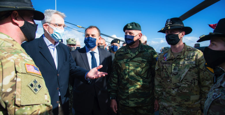 Αναφέρθηκε επίσης στην ιδιαίτερη σημασία της συνεχούς παρουσίας μονάδων των ΗΠΑ στην Χώρα μας, καλωσορίζοντας τα στελέχη της 1st Combat Aviation Brigade που κατόπιν της σύντομης παραμονής τους στην Αλεξανδρούπολη θα επιστρέψουν στην έδρα τους στο Fort Riley του Κάνσας (ΗΠΑ), καθώς και τα στελέχη της 1st Air Cavalry Brigade τα οποία προ της ανάπτυξής τους στην Ευρώπη θα φιλοξενηθούν στην Ελλάδα για ένα εξάμηνο (Στεφανοβίκειο, Βόλο), όπου προγραμματίζεται να διεξαχθούν σημαντικές δραστηριότητες επιχειρησιακής συνεκπαίδευσης, με σκοπό την βελτίωση της διαλειτουργικότητας μεταξύ των Ενόπλων Δυνάμεων των δύο Χωρών και την από κοινού επαύξηση της μαχητικής τους ικανότητας.