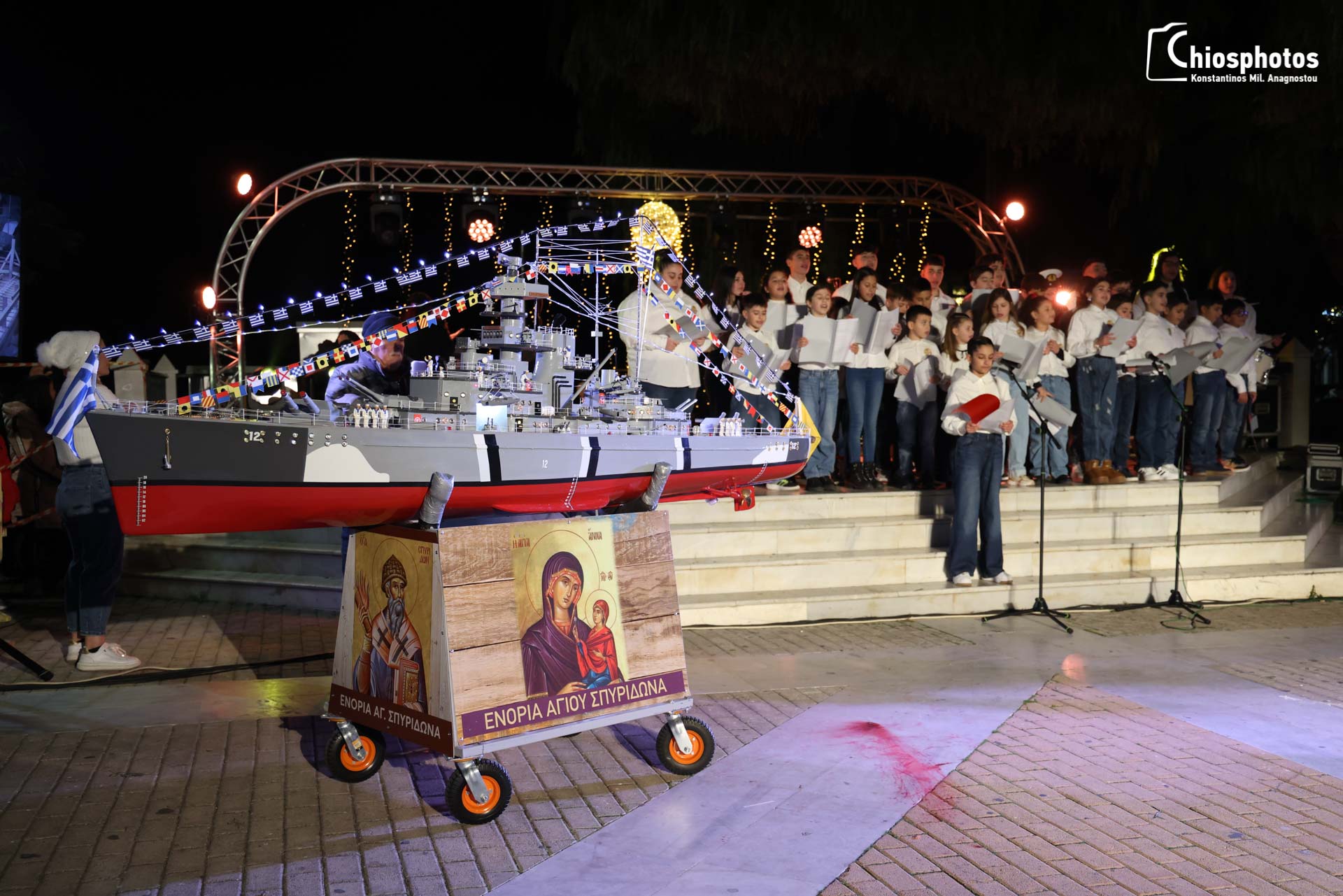 Πλήθος κόσμου κατέβηκε στην κεντρική πλατεία της Χίου την παραμονή της πρωτοχρονιάς για να παρακολουθήσει τα αγιοβασιλιάτικα καραβάκια .
