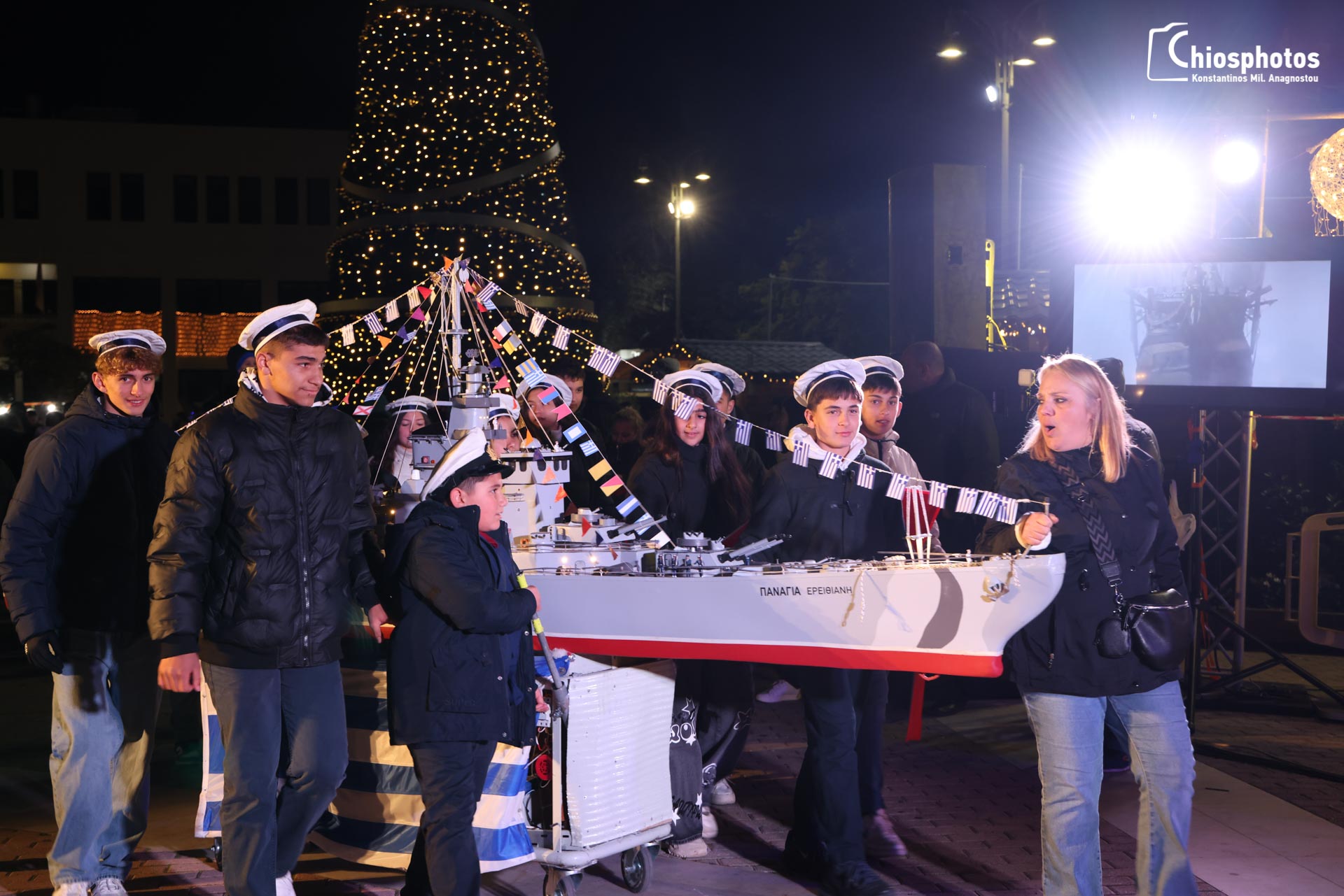 Πλήθος κόσμου κατέβηκε στην κεντρική πλατεία της Χίου την παραμονή της πρωτοχρονιάς για να παρακολουθήσει τα αγιοβασιλιάτικα καραβάκια .