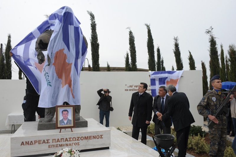 Ο Υπουργός Άμυνας κ. Χριστόφορος Φωκαΐδης τέλεσε χθες στον Αστρομερίτη, τα αποκαλυπτήρια του Μνημείου του Επισμηναγού Αντρέα Παπασωζόμενου, ο οποίος έπεσε εν ώρα καθήκοντος, στη διάρκεια άσκησης με ελικόπτερο τύπου ΜΙ-35, στο χωριό Αγία Μαρινούδα στην Πάφο, στις 5 Ιουλίου 2006.
