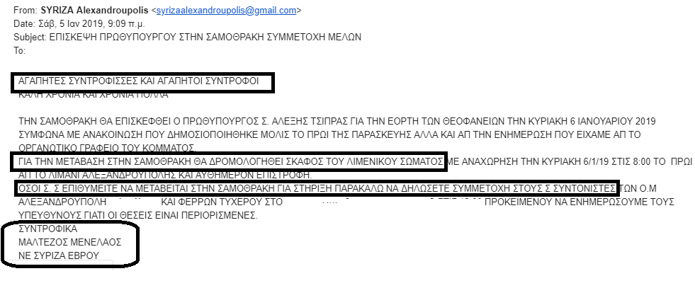 Το Evros-news.gr παρουσιάζει το… e-mail της ντροπής που έστειλε στα στελέχη του ΣΥΡΙΖΑ το πρωί του Σαββάτου ο Συντονιστής του κόμματος στον Έβρο Μενέλαος Μαλτέζος.