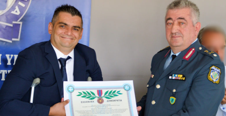 Η επίδοση του Αστυνομικού Μεταλλίου πραγματοποιήθηκε από τον Γενικό Περιφερειακό Αστυνομικό Διευθυντή Δυτικής Ελλάδος Ταξίαρχο Απόστολο ΜΑΡΤΖΑΚΛΗ, ενώ το Προεδρικό Διάταγμα αναγνώσθηκε από τον Προϊστάμενο του Γραφείου Δημοσίων Σχέσεων και Ενημέρωσης Δημοσιογράφων Δυτικής Ελλάδας, Αστυνόμο Β΄ Ιγνάτιο ΤΡΙΑΝΤΑΦΥΛΛΟΥ.