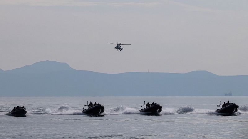 Έλληνες και Ισπανοί πεζοναύτες πραγματοποίησαν αποβατική ενέργεια σήμερα στην παραλία «Lido» στον Βόλο, στο πλαίσιο της media day της μεγάλης ΝΑΤΟϊκής άσκησης Steadfast Dart 2025– η οποία, πέραν της επίδειξης των δυνατοτήτων της Συμμαχικής Δύναμης Ταχείας Αντίδρασης του ΝΑΤΟ