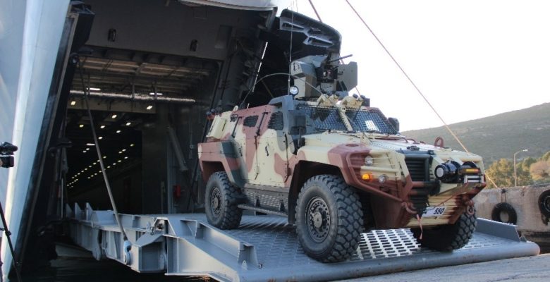 Με 20 τεθωρακισμένα οχήματα και ένα τάγματος Πεζοναυτών επιβιβάστηκαν στο πλοίο εκφόρτωσης TCG BAYRAKTAR στο λιμάνι Leventler εντός της ναυτικής βάσης της Φώκαιας