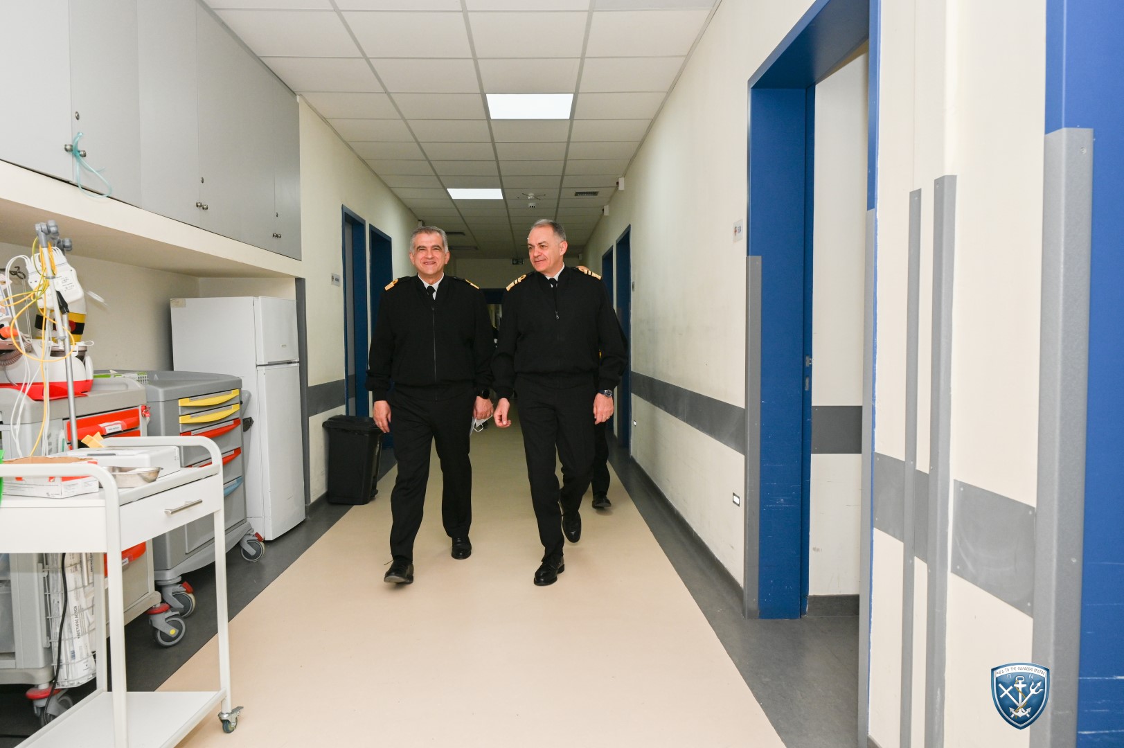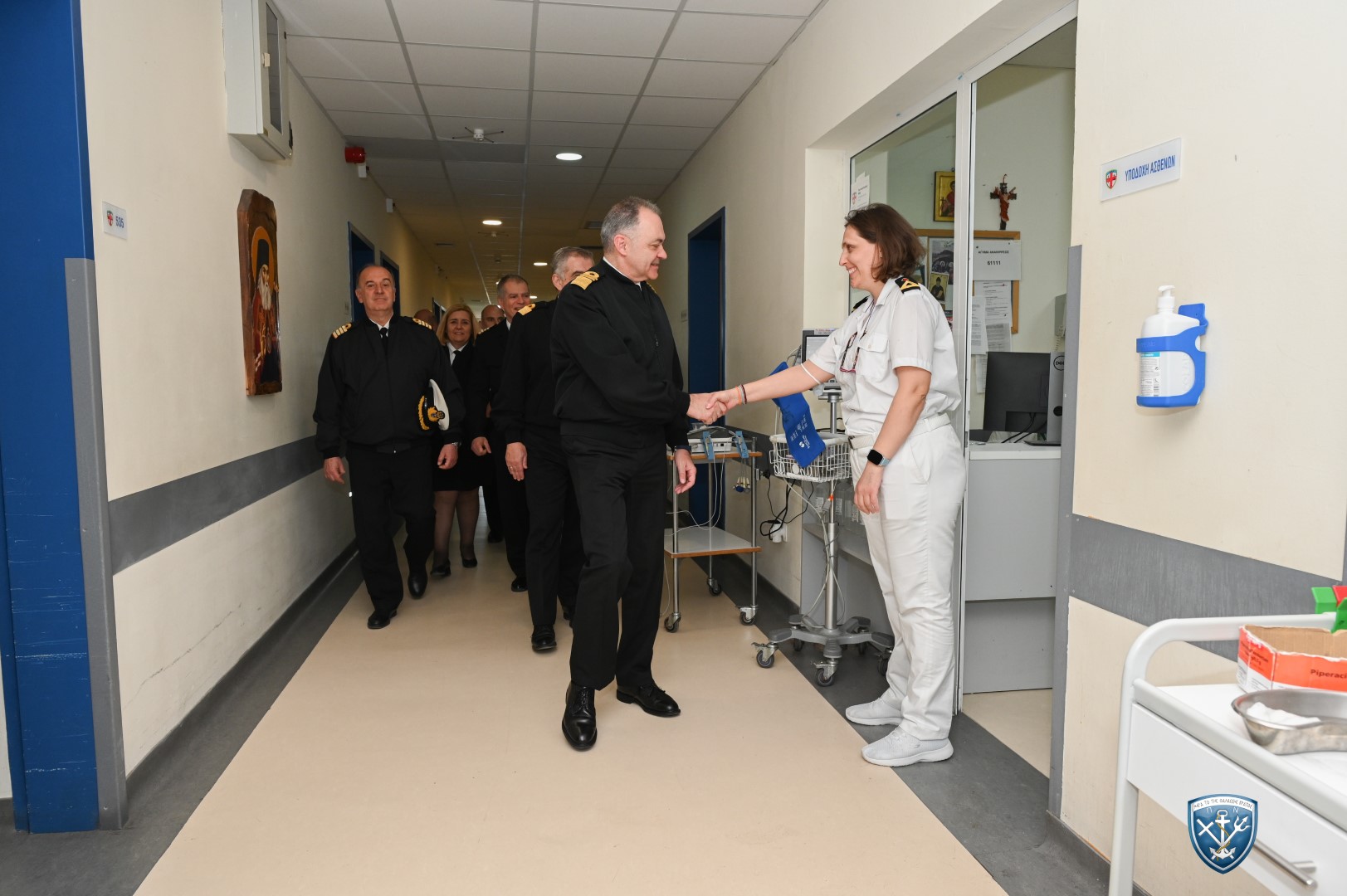 Παράλληλα, βρέθηκε στο Αρχηγείο Στόλου, στον Ναύσταθμο Σαλαμίνας και στο Ναυτικό Νοσοκομείο Αθηνών, όπου είχε την ευκαιρία να συνομιλήσει με στελέχη και προσωπικό, εκφράζοντας την αναγνώριση της Πολιτείας για το έργο τους.