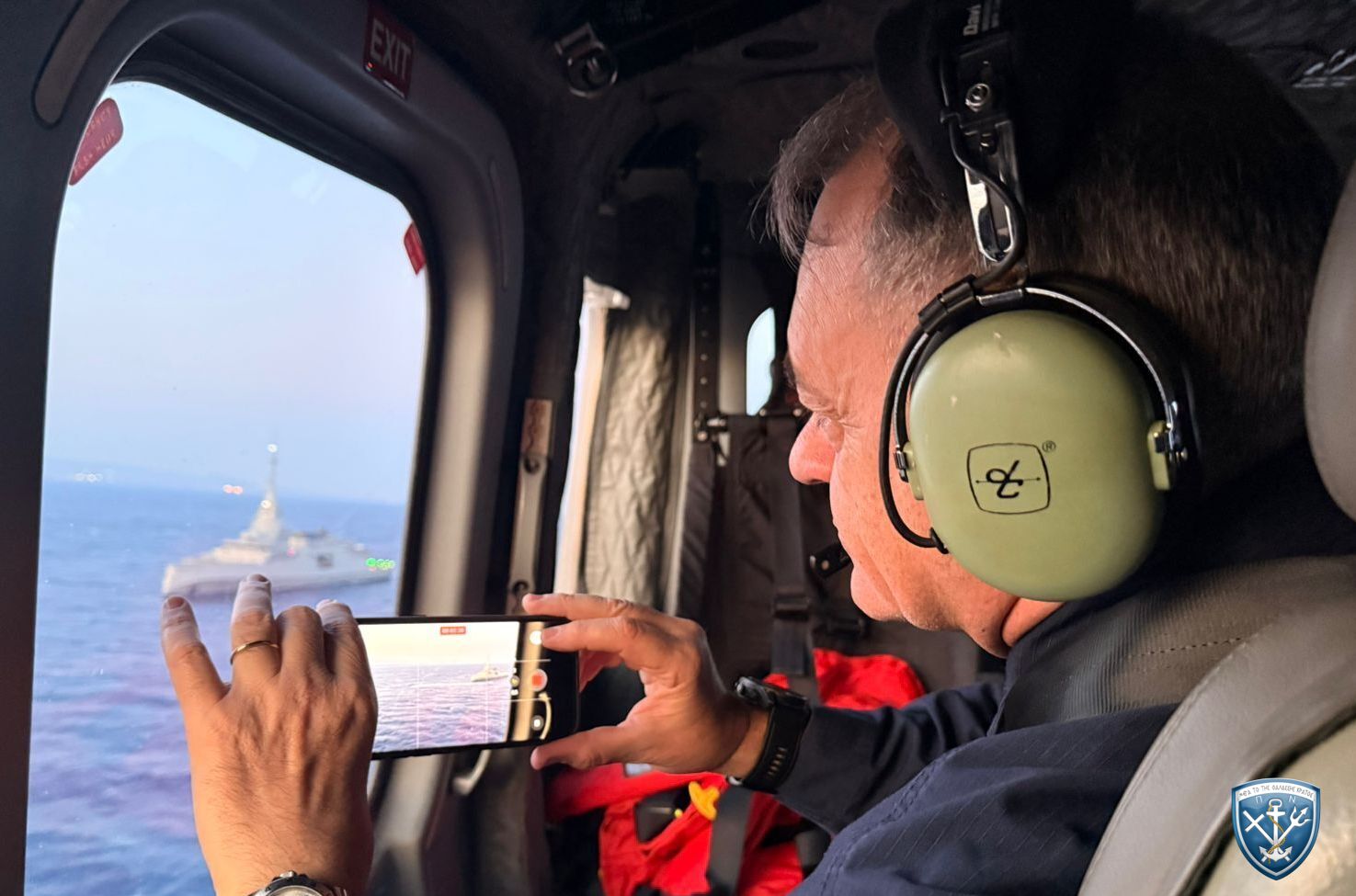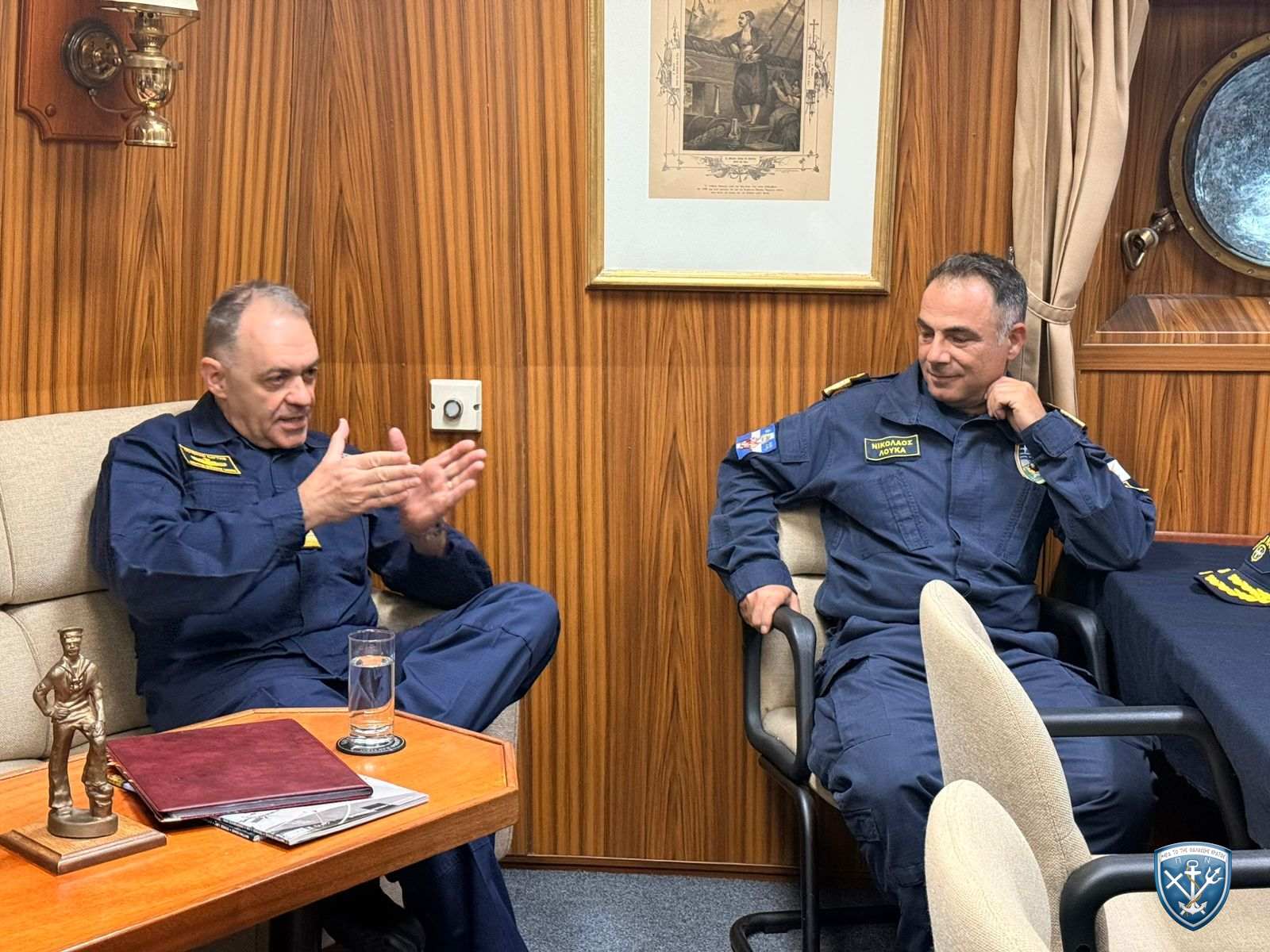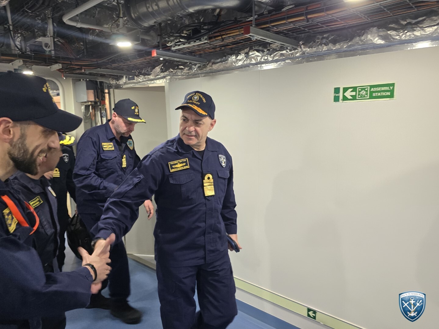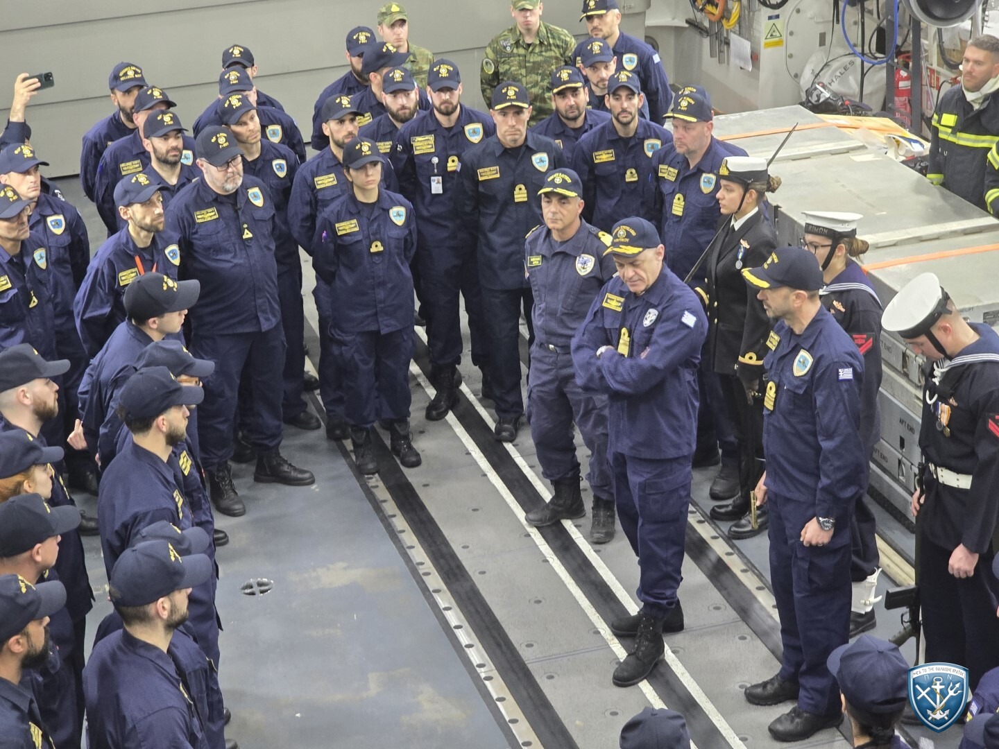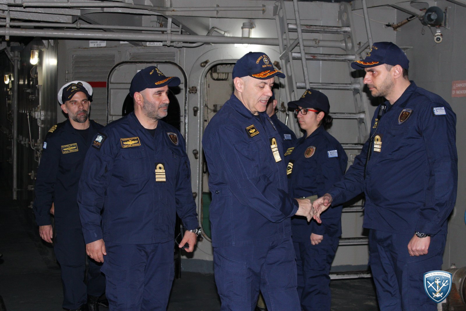 Ειδικότερα, επιβιβάστηκε στις φρεγάτες ΚΙΜΩΝ, ΕΛΛΗ και ΨΑΡΑ, ενώ επισκέφθηκε και τη Ναυτική Βάση «ΕΥΑΓΓΕΛΟΣ ΦΛΩΡΑΚΗΣ» στο Μαρί.