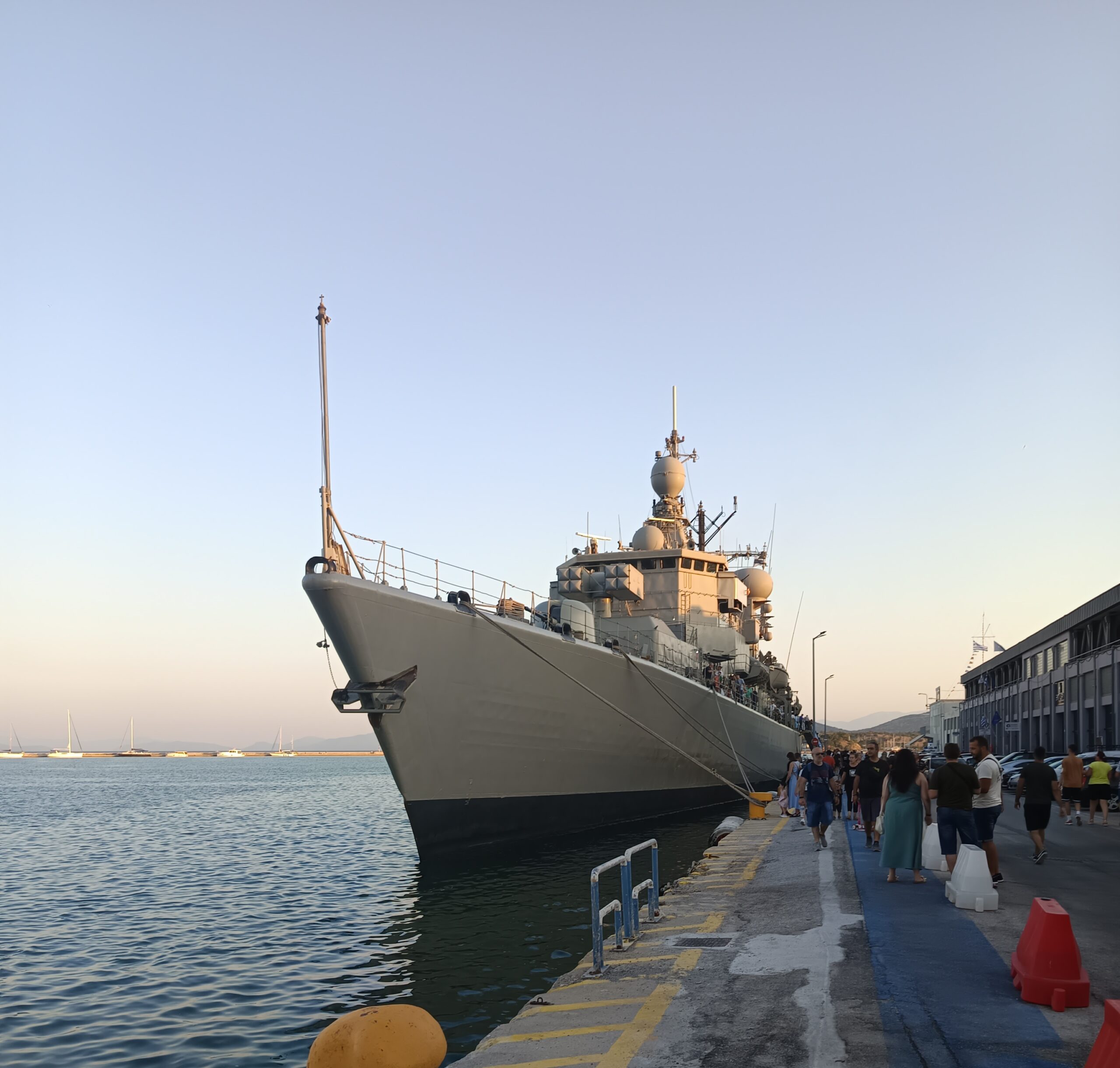Η φρεγάτα θα βρίσκεται στο Βόλο έως και την Παρασκευή 4 Ιουλίου, στα πλαίσια του εορτασμού της Ναυτικής Εβδομάδας 2025 που διοργανώνουν το Πολεμικό Ναυτικό σε συνεργασία με το Λιμενικό Σώμα– Ελληνική Ακτοφυλακή με κεντρικό μήνυμα «Η Ελλάς εν πλω».