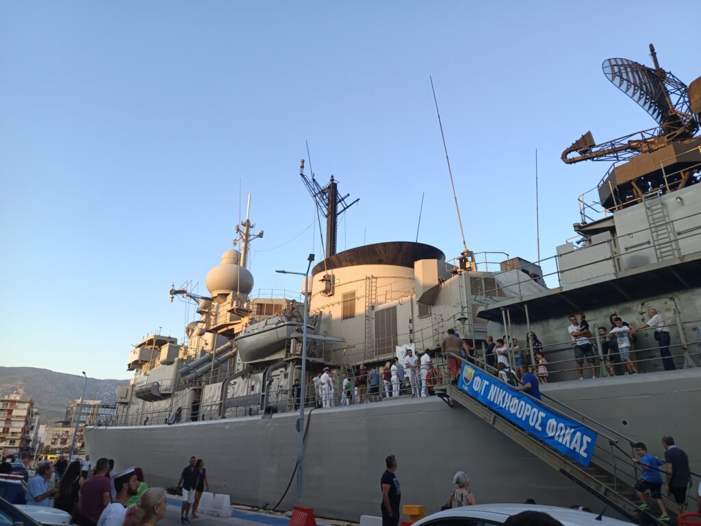 Για δεύτερη μέρα από τη στιγμή που ελλιμενίστηκε στον Βόλο, η Φ/Γ «ΝΙΚΗΦΟΡΟΣ ΦΩΚΑΣ» έγινε πόλος έλξης για μεγάλο πλήθος Βολιωτών που θέλησαν να δουν από κοντά ένα από τα «καμάρια» του Πολεμικού Ναυτικού.