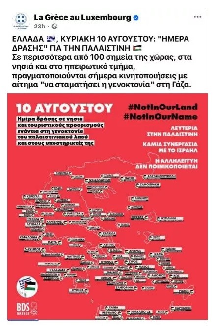 Σάλος προκλήθηκε μετά από ανάρτηση Ελληνικής πρεσβείας στο Λουξεμβούργο υπέρ της Παλαιστίνης – Tι απαντά η εκπρόσωπος του Υπουργείου Εξωτερικών, Λάνα Ζωχιού.