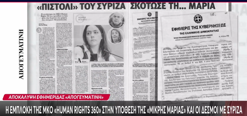 Η εφημερίδα, έχοντας στο πρωτοσέλιδο της τον τίτλο: «’Σκότωσαν’ τη…Μαρία. Με ‘πιστόλι’ του ΣΥΡΙΖΑ σε νησίδα του Έβρου», αποκαλύπτει πως η συνιδρύτρια της ΜΚΟ «Human Rights 360» Ελένη Τάκου, υπήρξε και διευθύντρια του γραφείου δύο υπουργών Μετανάστευσης, των κ.κ. Χριστοδουλοπούλου και Μουζάλα.