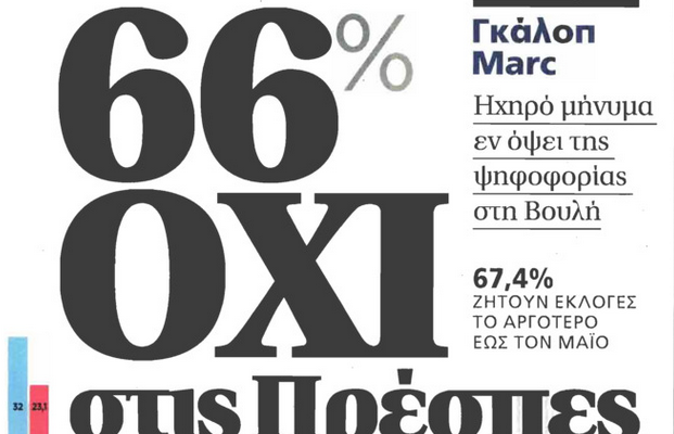 Τα παραπάνω ευρήματα δικαιολογούν σε μεγάλο βαθμό και το γεγονός ότι δύο στους τρεις πολίτες θέλουν τη διεξαγωγή πρόωρων εκλογών.