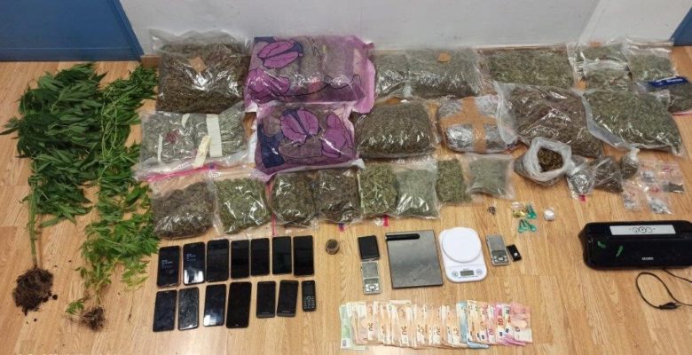 Κατασχέθηκαν μεταξύ άλλων -14- κιλά και -289- γραμμάρια ακατέργαστης κάνναβης, -27- γραμμάρια κοκαίνης, -3- δενδρύλλια κάνναβης, -8- ζυγαριές ακριβείας, χρηματικό ποσό -6.840- ευρώ