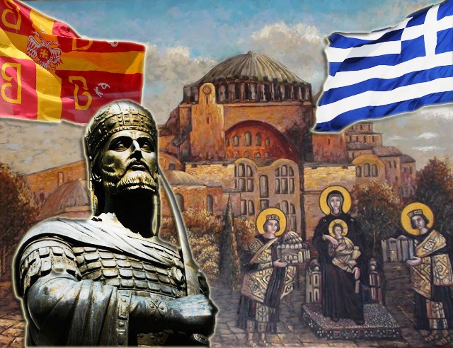 Στο πάνω μέρος της πλάκας είναι χαραγμένο το οικόσημο των Παλαιολόγων με τον δικέφαλο αετό, σύμβολο μιας δυναστείας που εξουσίασε τη Βυζαντινή Αυτοκρατορία από το 1261, οπότε και στέφθηκε αυτοκράτορας ο Μιχαήλ Η’ Παλαιολόγος, μέχρι το 1453 και την Αλωση της Κωνσταντινούπολης.