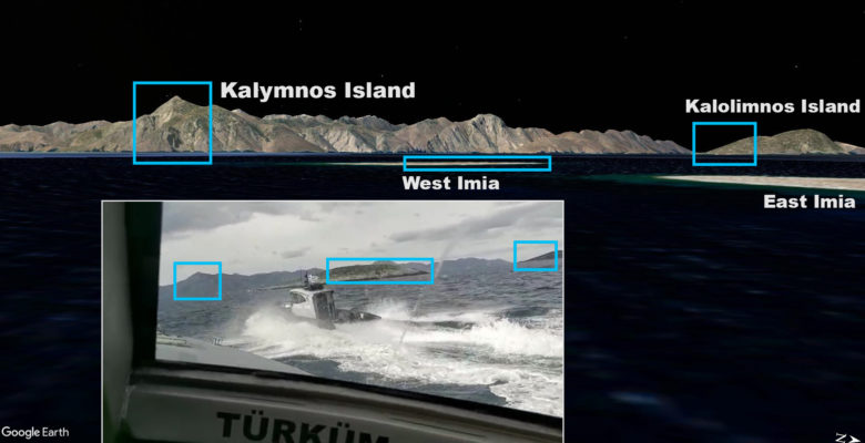 Γεωγραφική τοποθεσία της εικόνας από ένα σκάφος Τουρκικής Ακτοφυλακής κατά τη διάρκεια του συμβάντος της επακούμβησης με το Ελληνικό Σκάφος του Λ/Σ με το κοντά στα βραχώδη νησιά των Ιμίων !