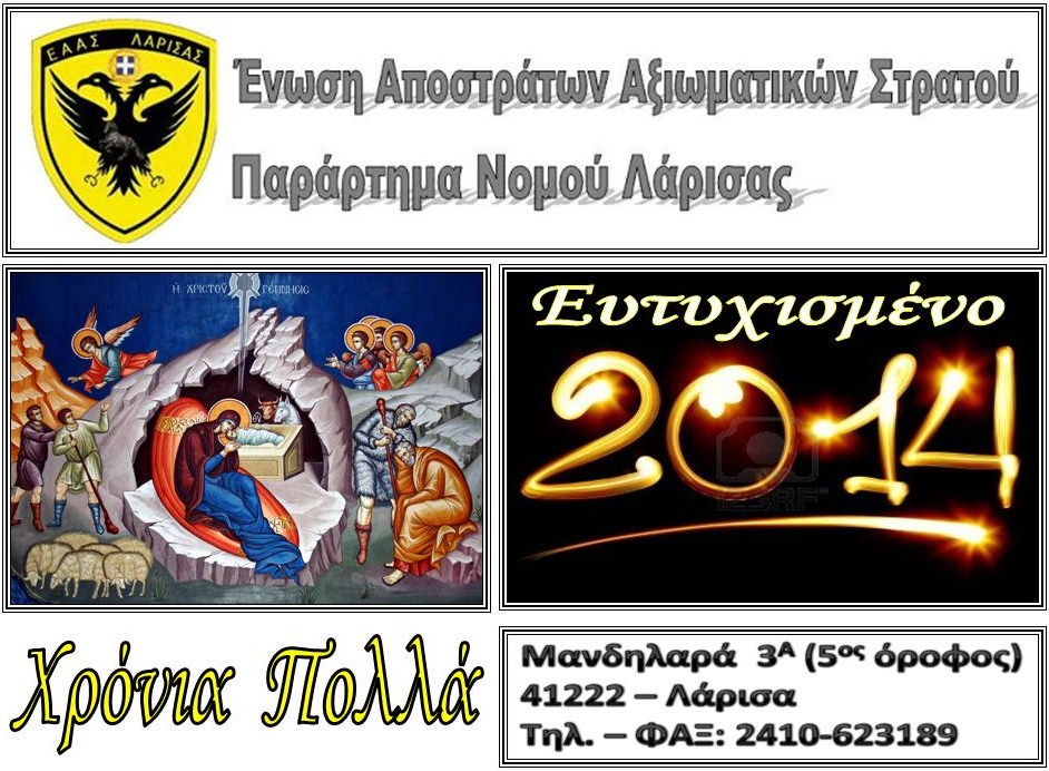 <p style="text-align: center;"><a href="http://veteranos.gr/wp-content/uploads/2013/12/Χρόνια-Πολλά.jpg"><img class="size-full wp-image-2046 aligncenter" alt="Χρόνια Πολλά" src="http://veteranos.gr/wp-content/uploads/2013/12/Χρόνια-Πολλά.jpg" width="942" height="692" /></a> <strong>Ευχές απο το Παράρτημα της ΕΑΑΣ του νομού Λάρισας !</strong></p>