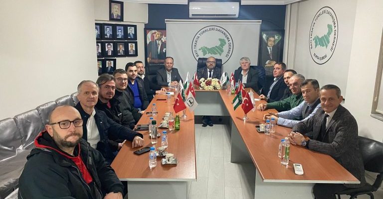 Στην παραπάνω φωτογραφία ο δήμαρχος πήγε στα γραφεία του αλυτρωτικού συλλόγου BTTDD-παράρτημα Προύσας. Δεν ενοχλήθηκε και πολύ από τις σημαίες της Ανεξάρτητης Δυτικής Θράκης…