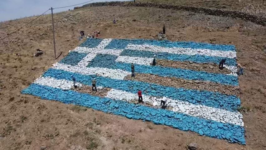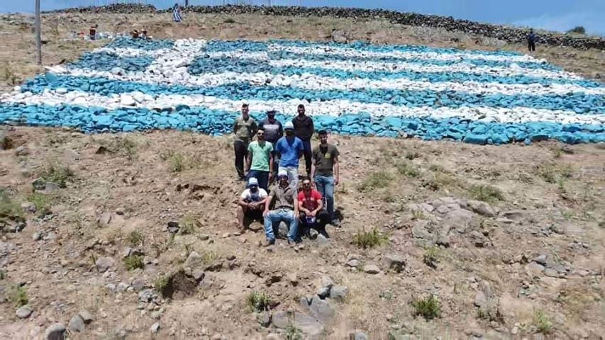 Με μεθοδικότητα και υπομονή δημιούργησαν σε περιοχή της Άγρας μια ελληνική σημαία με πέτρες έκτασης 500 τετραγωνικών μέτρων.
