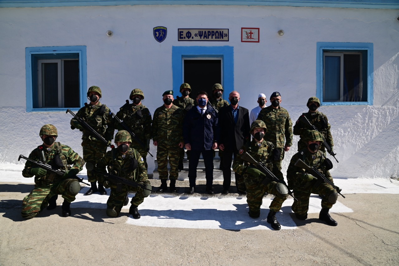 Ο Υφυπουργός Εθνικής Άμυνας κ. Νικόλαος Χαρδαλιάς, πραγματοποίησε τη Παρασκευή 11 Φεβρουαρίου 2022, επισκέψεις σε έδρες Σχηματισμών, Μονάδων και Επιτηρητικών Φυλακίων του Στρατού Ξηράς, του Πολεμικού Ναυτικού και της Πολεμικής Αεροπορίας, σε νησιά του Ανατολικού Αιγαίου.