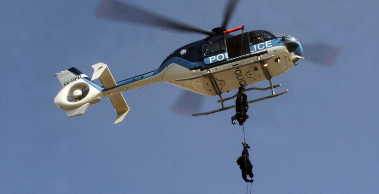 Στη συνέχεια παρακολούθησε μαζί με τους άλλους προσκεκλημένους, καταρρίχηση αστυνομικών της ΕΚΑΜ από ελικόπτερο στο προαύλιο του Μεγάρου, τους οποίους στην συνέχεια συνεχάρη και φωτογραφήθηκε μαζί τους