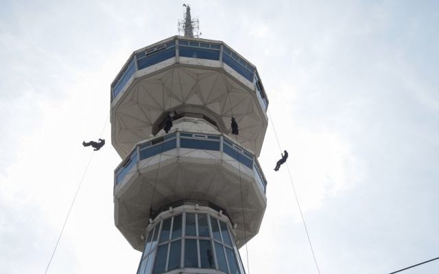 Εντυπωσιακές εικόνες εντυπωσίασαν τον πρωθυπουργό Κυριάκο Μητσοτάκη, αλλά και στους επισκέπτες της 85ης ΔΕΘ, τα στελέχη της ειδικής Κατασταλτικής Αντιτρομοκρατικής Μονάδας (ΕΚΑΜ) που… βούτηξαν στο κενό από την κορυφή του Πύργου του ΟΤΕ.