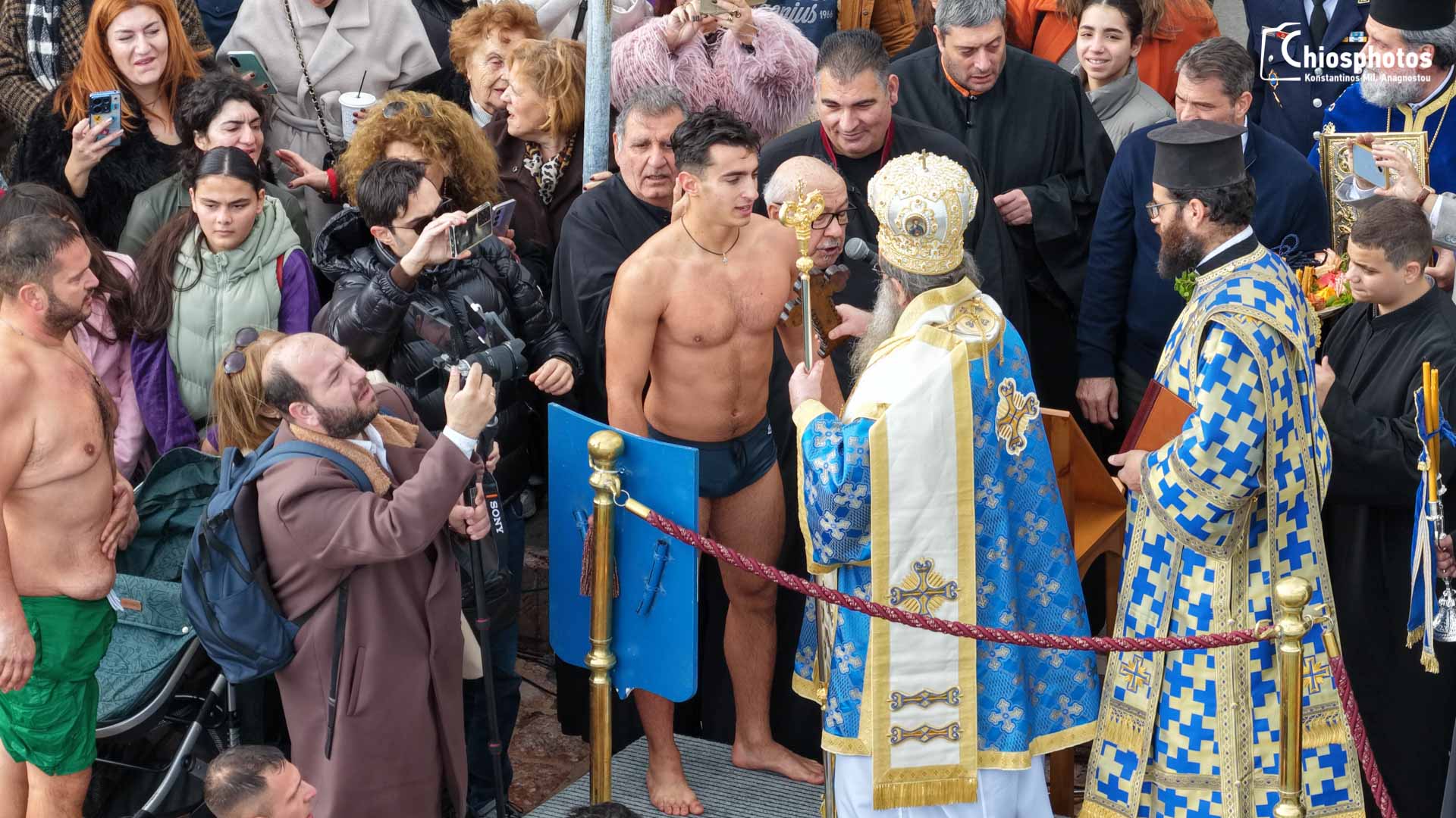 Με κάθε εκκλησιαστική λαμπρότητα και τη συμμετοχή πλήθους πιστών γιορτάστηκαν τα Θεοφάνεια στο λιμάνι της Χίου. Ο καθαγιασμός των υδάτων έγινε από τον Σεβασμιώτατο Μητροπολίτη Χίου, Ψαρών και Οινουσσών κ. Μάρκο, ενώ για το Σταυρό βούτηξαν στο λιμάνι 14 κολυμβητές.