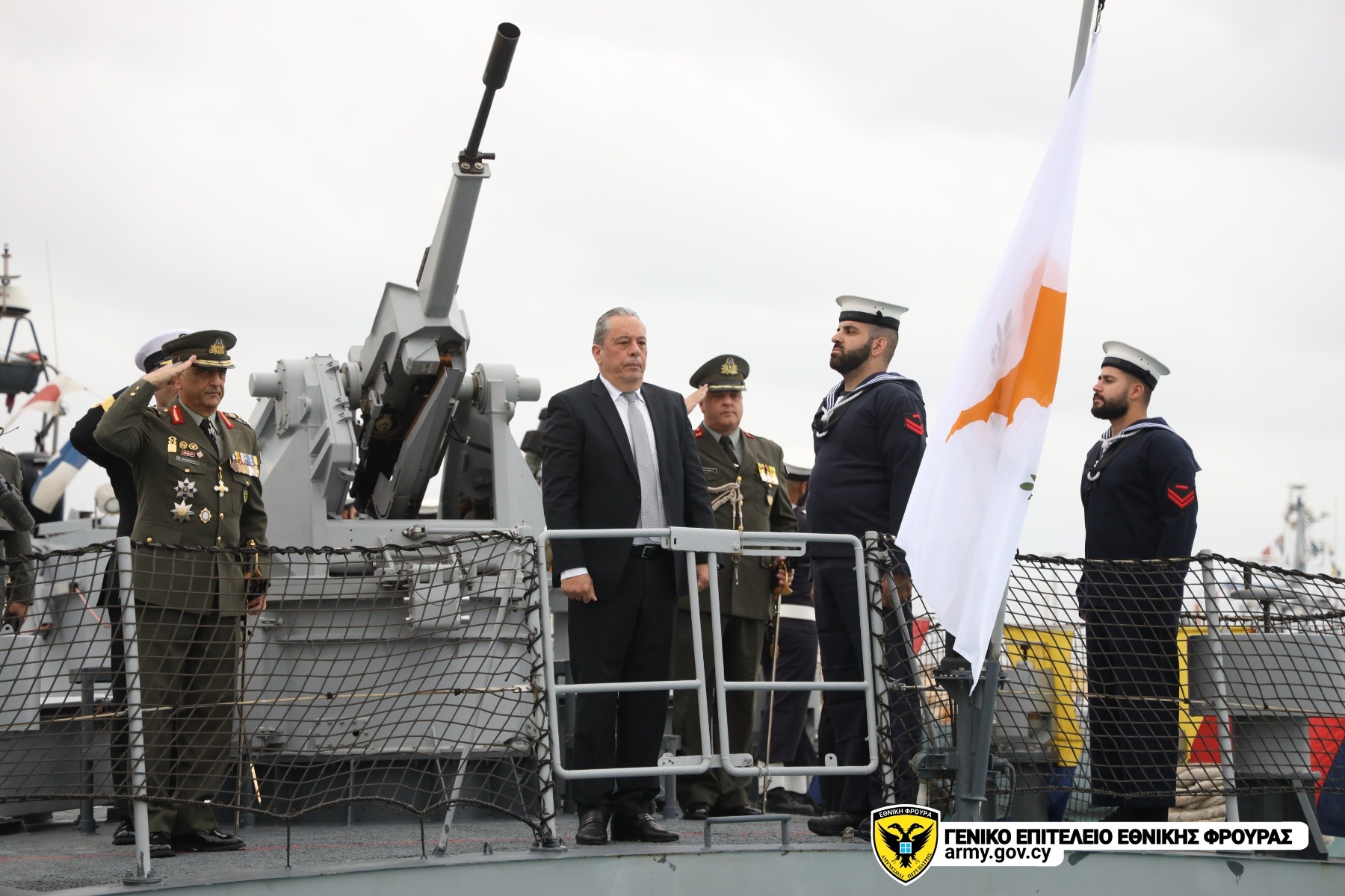 Με την ολοκλήρωση της τελετής, έγινε ρίψη στεφάνου στη θάλασσα από τον Υπουργό Άμυνας και τον Αρχηγό ΕΦ, προς τιμή των πεσόντων.