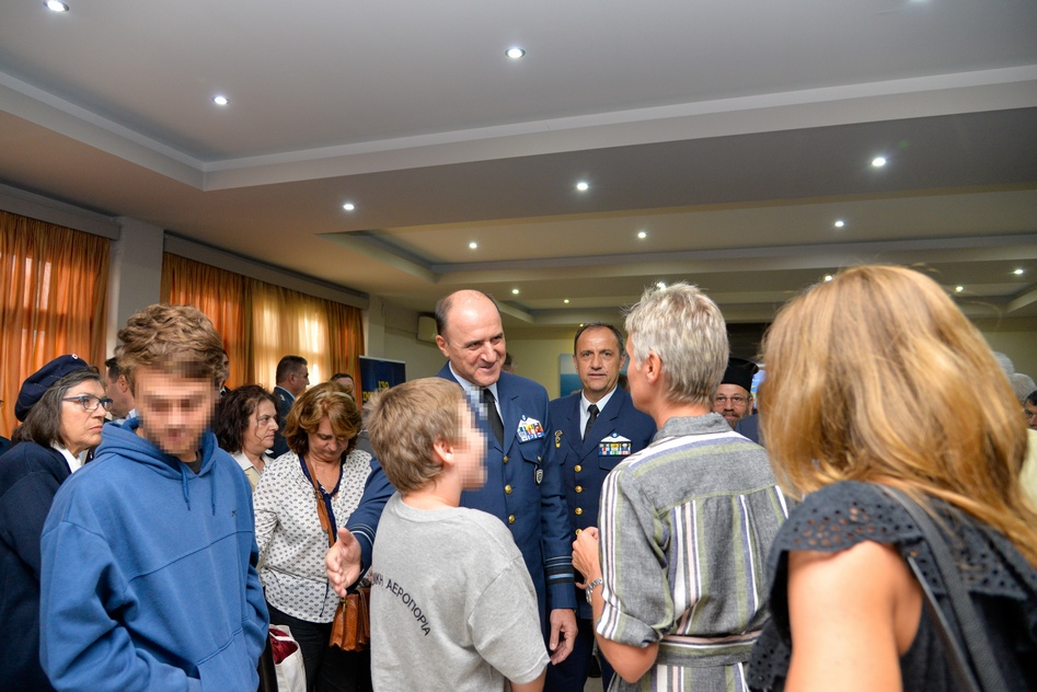 Οι εορταστικές εκδηλώσεις συνεχίστηκαν το απόγευμα στην πόλη της Μύρινας, όπου πραγματοποιήθηκε, στο κινηματοθέατρο «Μαρούλα», ιστορική οπτικοακουστική αναδρομή της Ελληνικής Πολεμικής Αεροπορίας στη Λήμνο, καθώς και επίδειξη της Ομάδας Αεροπορικών Επιδείξεων Μεμονωμένου Αεροσκάφους F-16 «ΖΕΥΣ» στον Ρωμέικο Γιαλό.