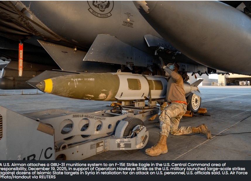 Επιχείρηση “Hawkeye Strike”: Αντίποινα στις δυνάμεις του ISISΗ επιχείρηση, που φέρει την ονομασία “Hawkeye Strike”, ξεκίνησε μετά τις 13 Δεκεμβρίου και αποτελεί απάντηση στις επιθέσεις κατά των αμερικανικών δυνάμεων στη Συρία.