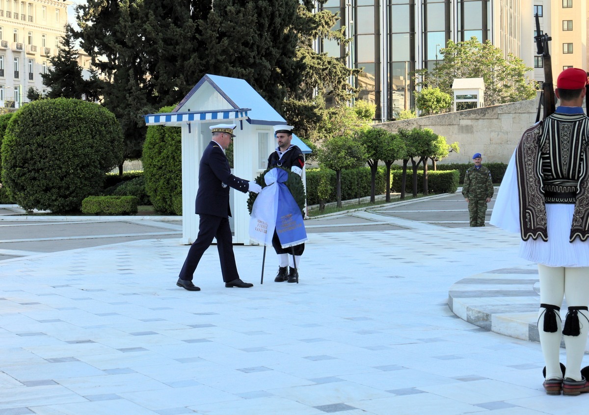 Ο Ανώτατος Συμμαχικός Διοικητής Μετασχηματισμού, πριν τη μετάβασή του στο Στρατόπεδο του «ΠΑΠΑΓΟΥ», κατέθεσε στεφάνι στο Μνημείο του Αγνώστου Στρατιώτη στην Πλατεία Συντάγματος.