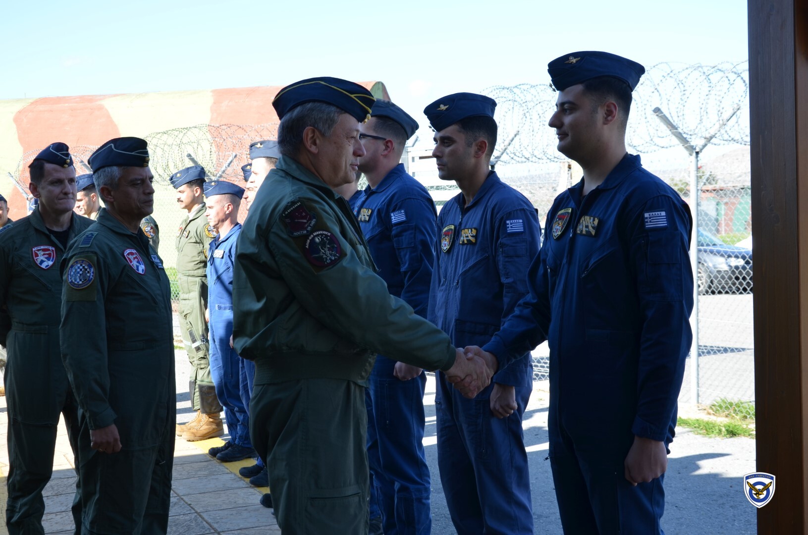 Κατά τη διάρκεια της επίσκεψής του, ο Αρχηγός, συνομίλησε και αντάλλαξε ευχές με το προσωπικό της Μονάδας, καθώς και με τους Ιπταμένους και Τεχνικούς των αεροσκαφών επιφυλακής.