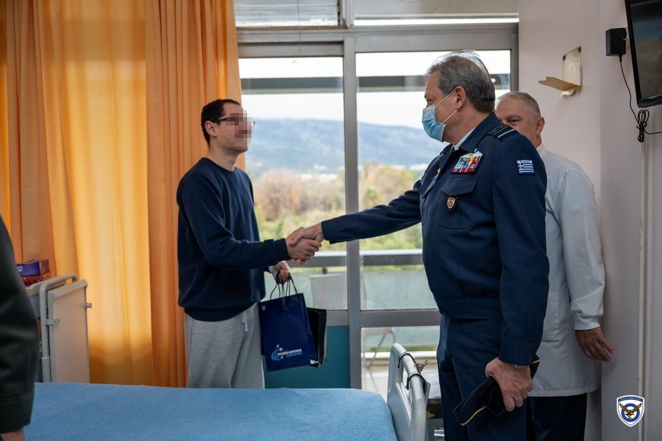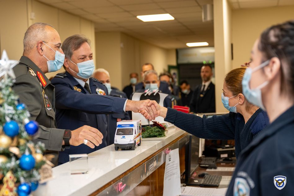;Oπου τους υποδέχθηκαν ο Διευθυντής της Διεύθυνσης Υγειονομικού του ΓΕΑ, Ταξίαρχος (ΥΙ) Ιωάννης Καπίρης και ο Διοικητής του Νοσοκομείου, Ταξίαρχος (ΥΙ) Αντώνιος Χειμώνας.
