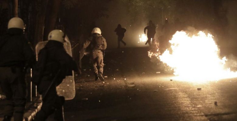 Επίθεση με μολότοφ και πέτρες εξαπέλυσαν περίπου 25 άτομα σε αστυνομικές δυνάμεις στην οδό Καλλιδρομίου στα Εξάρχεια.