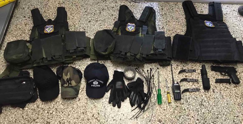 (3) φορείς αλεξίσφαιρου (χωρίς αλεξίσφαιρες πλάκες) που έφεραν σήματα της Ελληνικής Αστυνομίας,