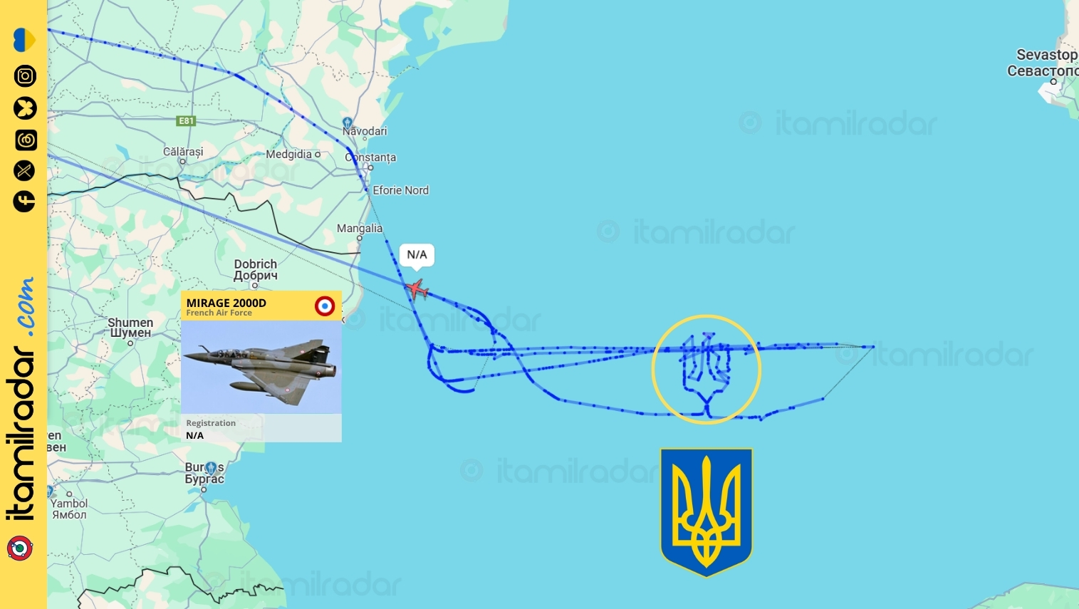 Αυτό που έκανε την αποστολή ξεχωριστή δεν ήταν μόνο ο χαρακτήρας της, αλλά το μοτίβο πτήσης ενός εκ των Mirage πάνω από τη δυτική Μαύρη Θάλασσα: η διαδρομή που ακολούθησε το αεροσκάφος σχημάτισε στον ουρανό το εθνικό έμβλημα της Ουκρανίας — μια σαφής και συνειδητή συμβολική κίνηση.