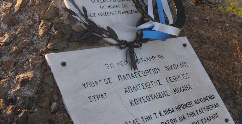 Έφεδροι καταδρομείς στην κορυφή του Λορόβουνου όπου και ο μαρμάρινος σταυρός με τα ονόματα του Υπολοχαγού της 31 Μ Κ Νικόλαου Παπαγεωργίου και των καταδρομέων Γεώργιου Απλιτσιωτη και Μιχαήλ Κασουλίδη.