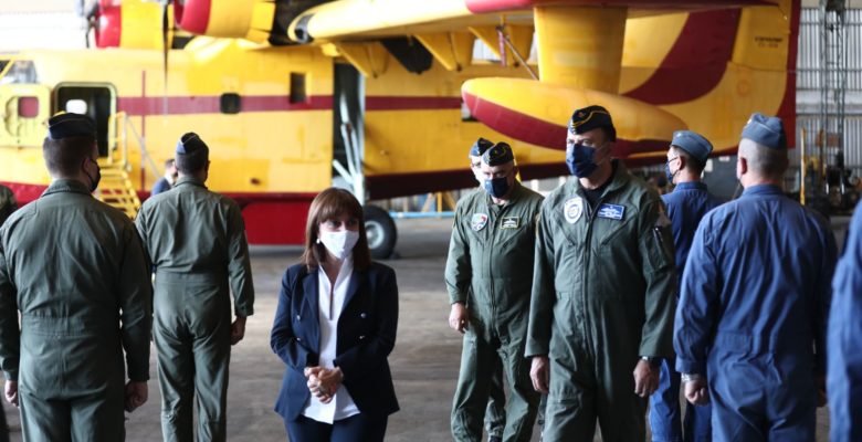 Αμέσως μετά ο αρχηγός της Πολεμικής Αεροπορίας αντισμήναρχος (Ι) Γεώργιος Πλιούμης εξήγησε στην Πρόεδρο ότι στην περίοδο των πυρκαγιών του Αυγούστου τα πυροσβεστικά πραγματοποίησαν 500 εξόδους με 1.400 ώρες πτήσης.