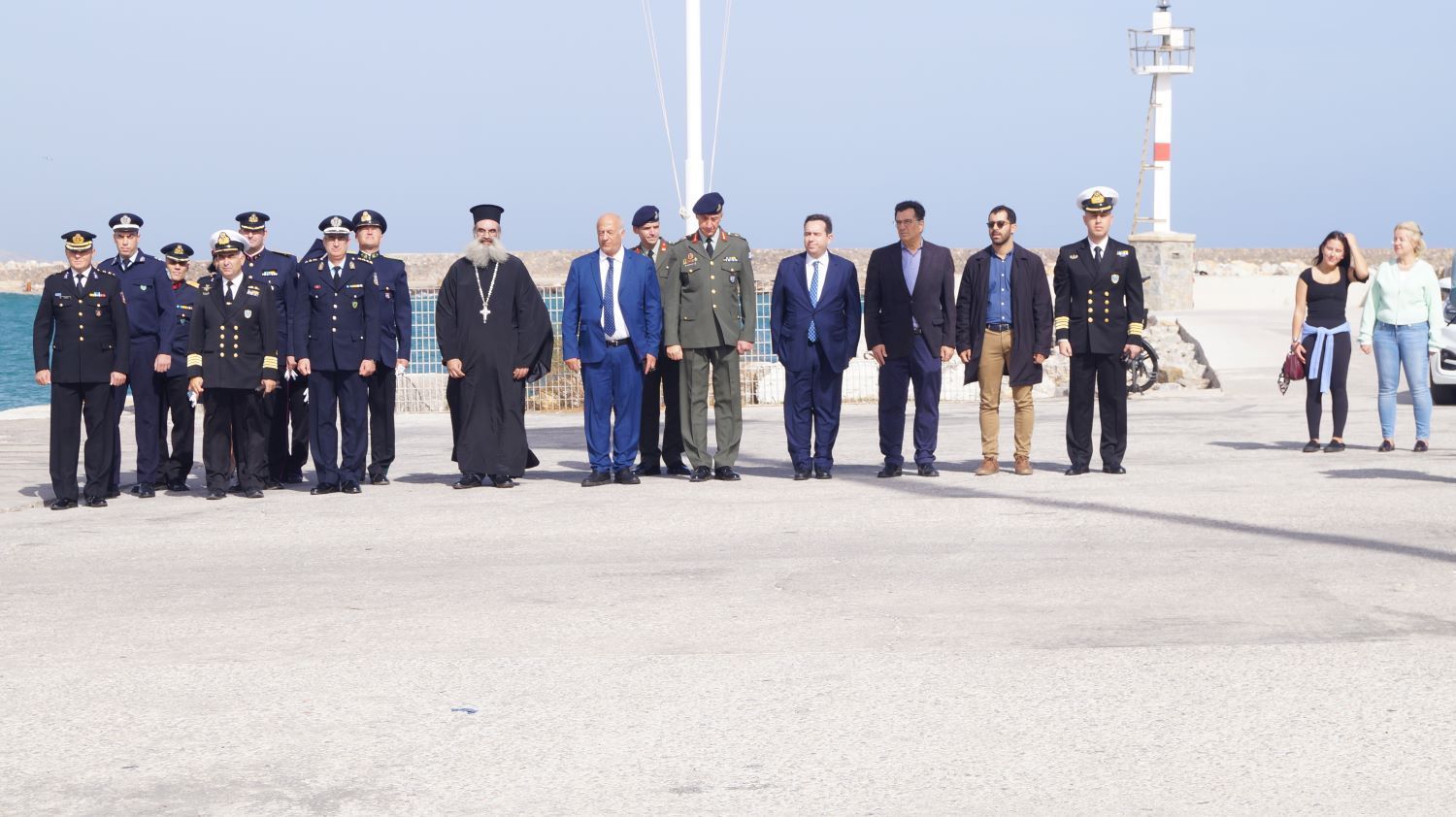 Με λαμπρότητα και εθνική υπερηφάνεια πραγματοποιήθηκε το μεσημέρι της Δευτέρας η έπαρση της μεγάλης ελληνικής σημαίας στον νότιο Λιμενοβραχίονα της Χίου, στο πλαίσιο των εκδηλώσεων για την επέτειο της 28ης Οκτωβρίου.
