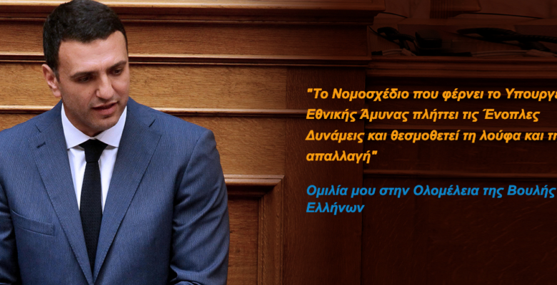 Ο εισηγητής της Α’ Αθηνών εξέφρασε την αντίθεση της ΝΔ στην ίδρυση Γραφείων Νομικής Προστασίας εντός της διοίκησης κάθε Μονάδας που, όπως είπε, «βάζει τον έναν στρατιωτικό ενάντια στον άλλον, υπερβαίνοντας την ιεραρχία, ακόμα και τον Διοικητή κάθε Μονάδας».