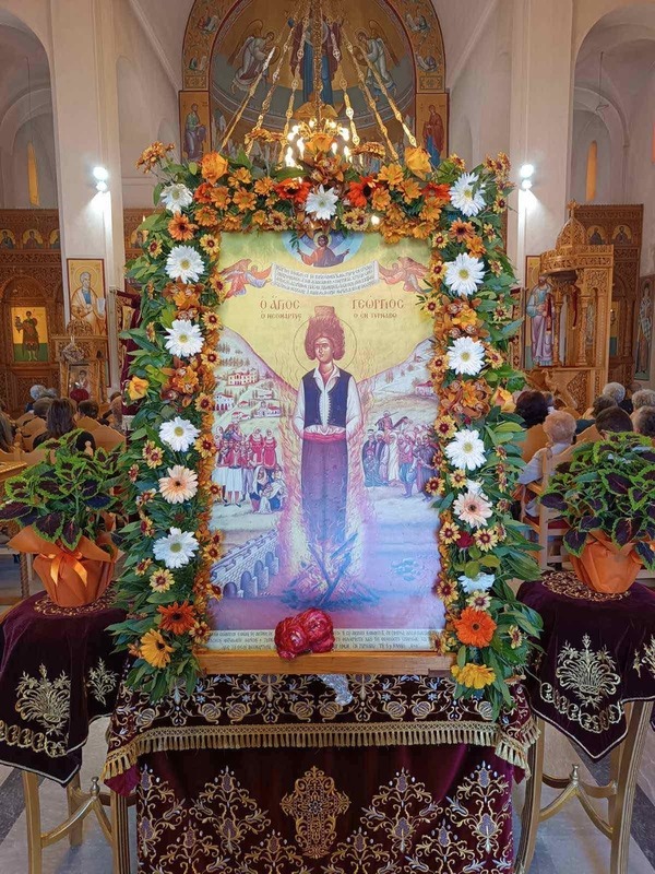 Το Σάββατο το απόγευμα τελέστηκε ο Μέγας Πανηγυρικός Εσπερινός μετ’ αρτοκλασίας, με τη συμμετοχή όλων των ιερέων του Τυρνάβου, ενώ στη συνέχεια πραγματοποιήθηκε η Λιτανεία της Ιεράς Εικόνος του Αγίου Γεωργίου του Νεομάρτυρος.