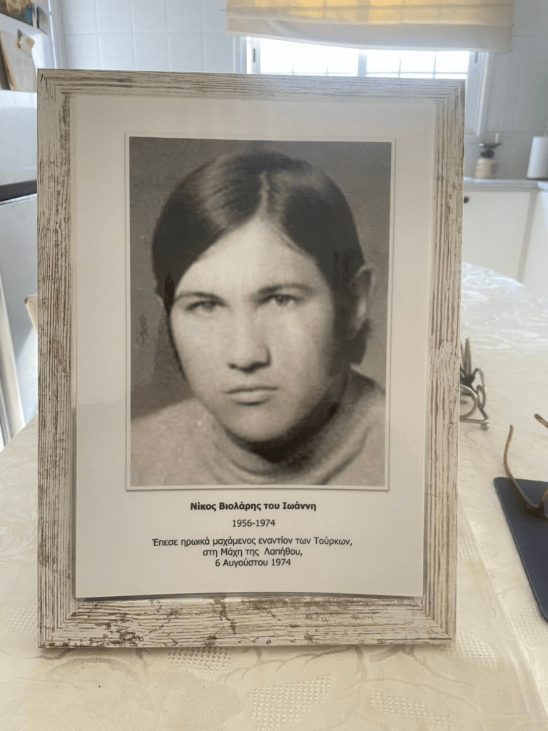 Μετά από αυτό το περιστατικό, ηρεμήσαμε κάπως. Όμως, μετά τις 6 Αυγούστου δεν είχαμε άλλα νέα αλλά πληροφορηθήκαμε ότι η μονάδα του είχε μετακινηθεί στο χώρο διασποράς στη Σκαρίνου. Τότε πήγαμε με τον πατέρα μου στη Σκαρίνου με σκοπό να συναντήσουμε τον Νίκο. Όταν φτάσαμε στην πύλη και ρωτήσαμε σχετικά, μας είπαν: Δυστυχώς δεν έχουμε νέα. Στείλαμε μια ομάδα ναρκοθέτησης στη Λάπηθο αλλά δυστυχώς δεν επέστρεψε κανένας από αυτούς».