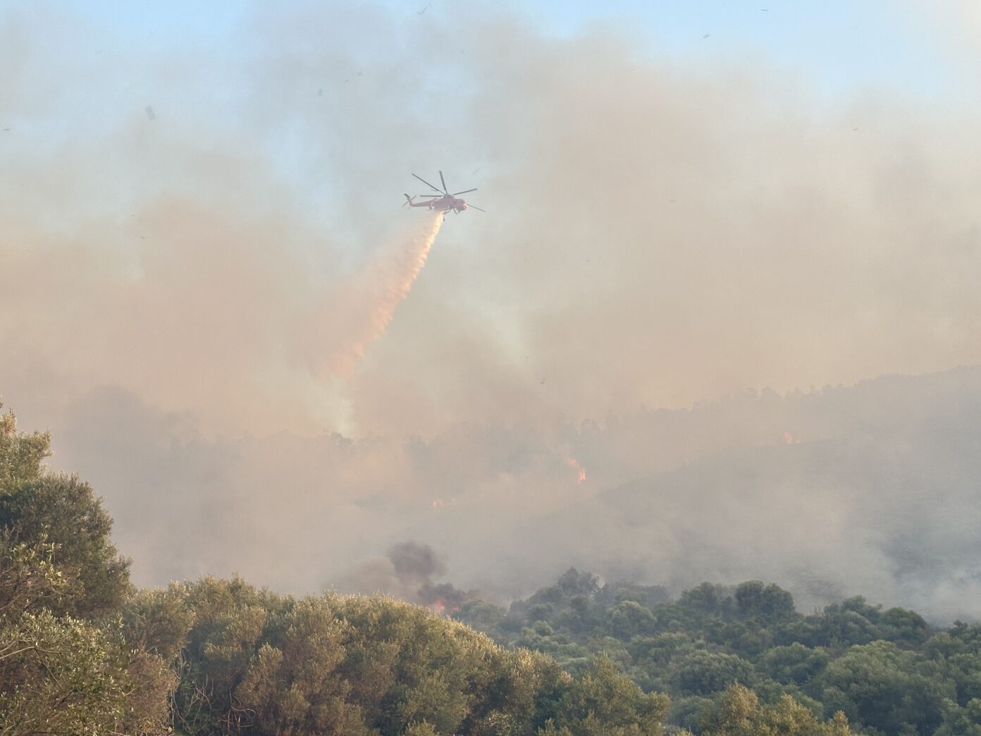 Στο μέτωπο επιχειρούν δύο ελικόπτερα και μεγάλος αριθμός πυροσβεστών απ όλη την περιφέρεια
