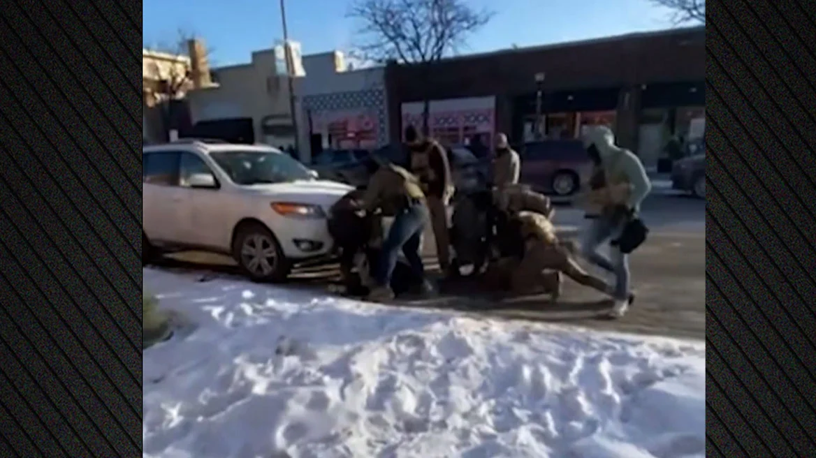 καταγράφεται η στιγμή που ομοσπονδιακοί πράκτορες της υπηρεσίας Μετανάστευσης και Τελωνείων ακινητοποιούν έναν άνδρα, τον ρίχνουν στο έδαφος και στη συνέχεια τον πυροβολούν θανάσιμα, κατά τη διάρκεια έντασης που ξέσπασε στο περιθώριο επιχείρησης της ICE.