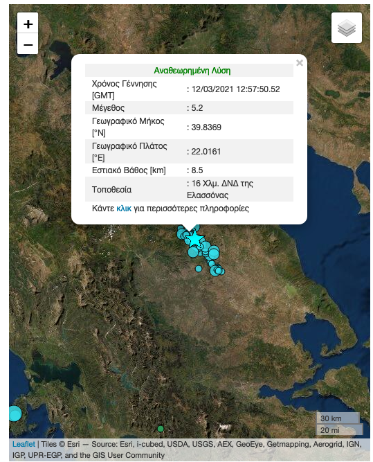 Σεισμός 5,3 ρίχτερ(αρχική αυτόματη μέτρηση) του Εθνικού Αστεροσκοπείου έγινε πριν από λίγο με επίκεντρο 19 χιλιόμετρα νότια-νοτιοδυτικά της Ελασσόνας.