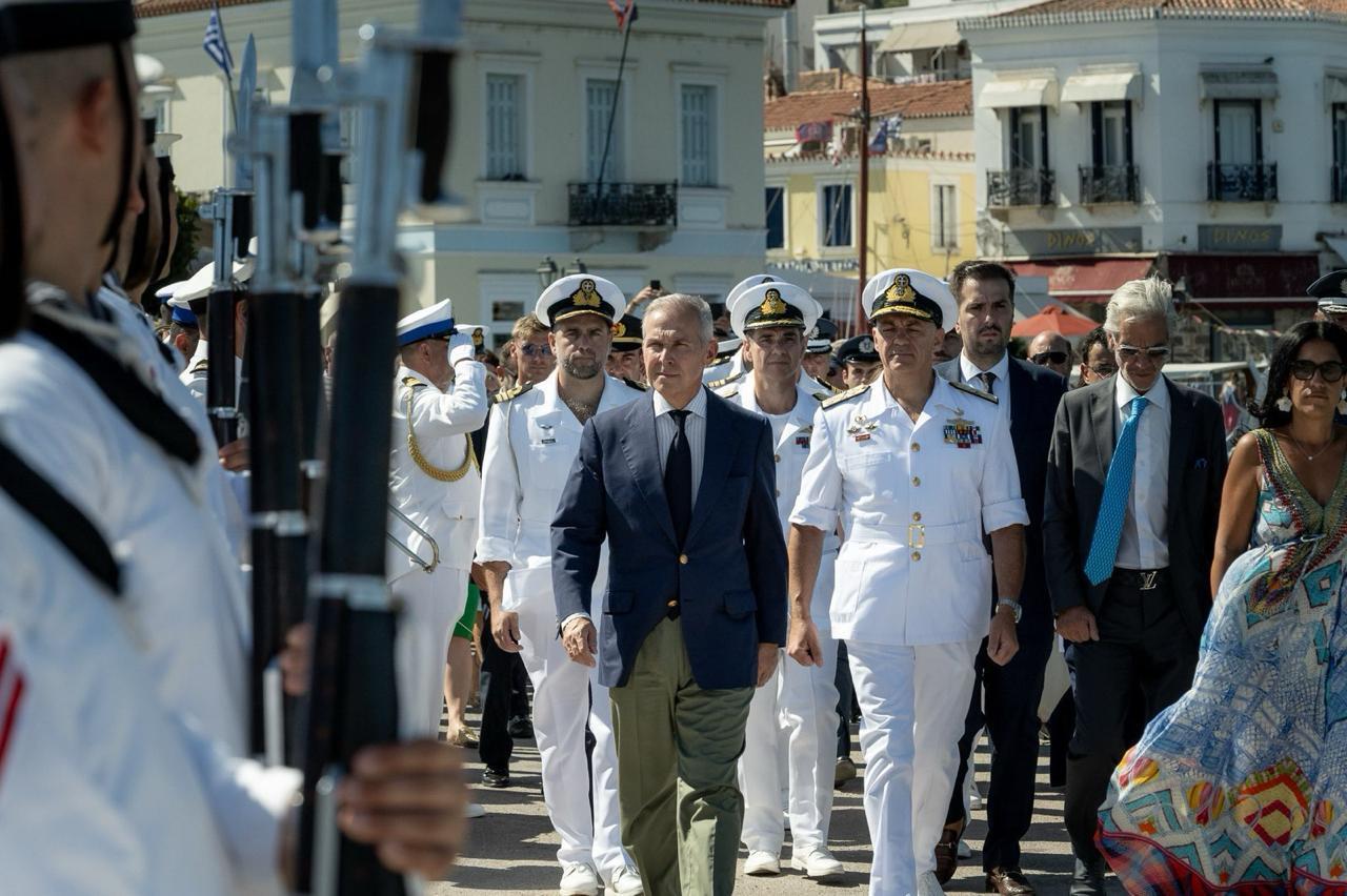Παρόντες ήταν, ο Σεβασμιώτατος Μητροπολίτης Ύδρας, Σπετσών και Αιγίνης κ.κ. Εφραίμ, ο υφυπουργός Κλιματικής Κρίσης και Πολιτικής Προστασίας Κωνσταντίνος Κατσαφάδος, ο βουλευτής Α’ Πειραιώς και Νήσων Νικόλαος Βλαχάκος ως εκπρόσωπος του Προέδρου της Βουλής των Ελλήνων, ο Αρχηγός του Γενικού Επιτελείου Ναυτικού Αντιναύαρχος Δημήτριος – Ελευθέριος Κατάρας ΠΝ ως εκπρόσωπος του Αρχηγού του Γενικού Επιτελείου Εθνικής Άμυνας, ο Παναγιώτης Ψυχογυιός ως εκπρόσωπος του Προέδρου του ΠΑΣΟΚ-Κίνημα Αλλαγής, και άλλοι εκπρόσωποι.