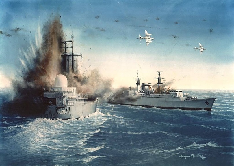Οι Αργεντινοί πιλότοι, κάνοντας χρήση της μέγιστης ακτίνας δράσης των αεροσκαφών τους και κυρίως των πλεονεκτημάτων που τους χάριζε ο σύγχρονος και αρκετά εξελιγμένος, πρωτοποριακός αντιπλοϊκός πύραυλος Exocet κατόρθωσαν να βυθίσουν αρκετά βρετανικά σκάφη και να προκαλέσουν βαριές ανθρώπινες απώλειες.