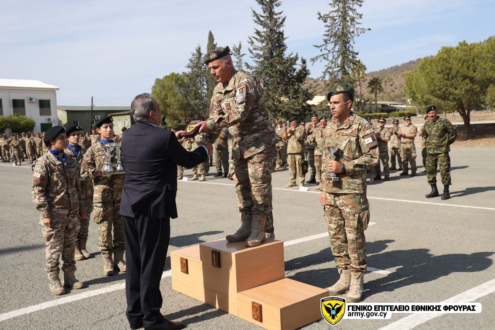 Με το πέρας της βολής, πραγματοποιήθηκε τελετή βράβευσης των διακριθέντων και επίδοση αναμνηστικών διπλωμάτων, από τον Υπουργό Άμυνας κ. Βασίλη Πάλμα και τον Αρχηγό της Εθνικής Φρουράς, Αντιστράτηγο Εμμανουήλ Θεοδώρου.