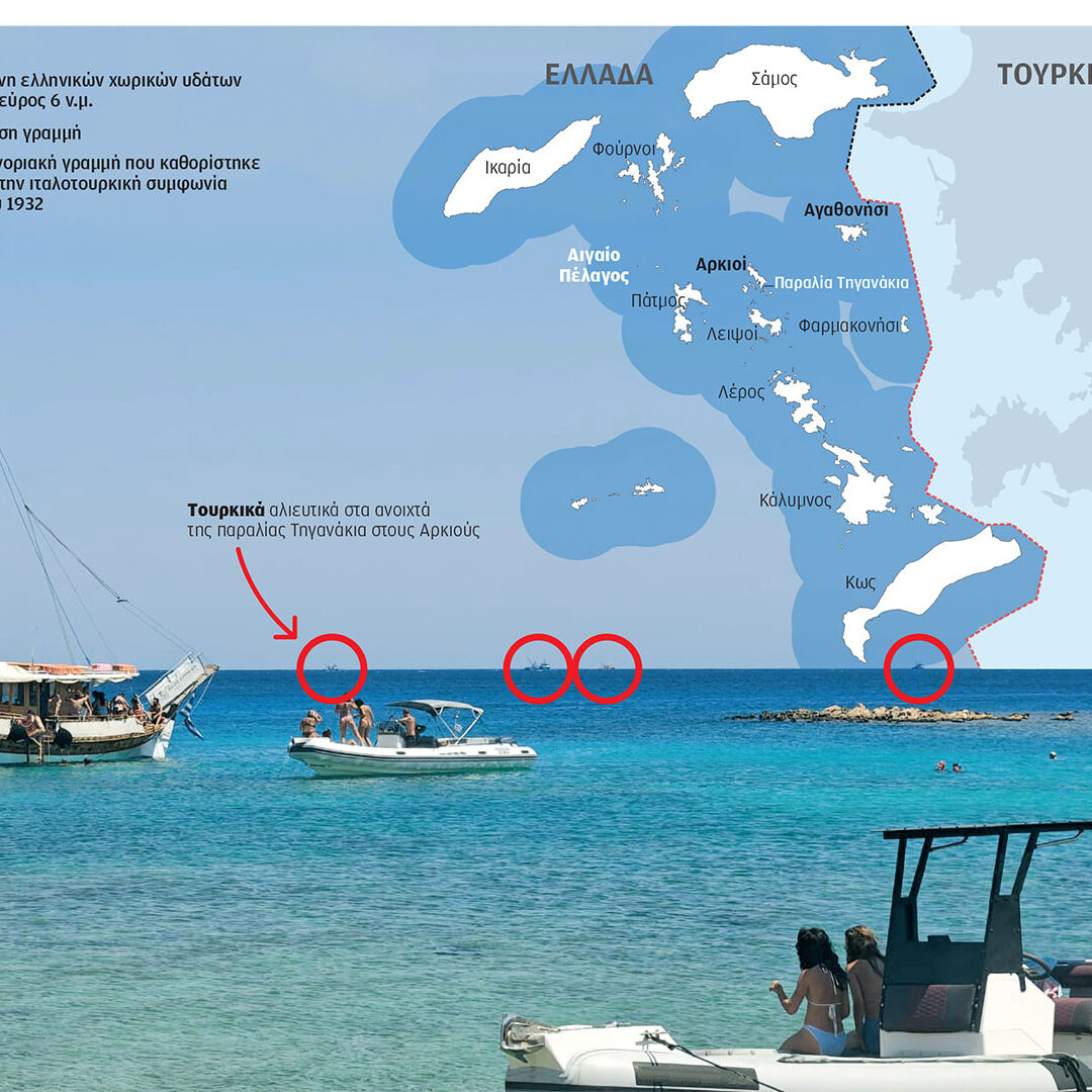 Φέτος, όμως, οι Τούρκοι καπετάνιοι με τις μεγάλες ανεμότρατες αποθρασύνθηκαν εντελώς και έφτασαν να ψαρεύουν σε απόσταση αναπνοής από τις ακτές νησιών όπως το Αγαθονήσι, το ελληνικό ακριτικό νησιού που βρίσκεται νοτιοανατολικά της Σάμου και ανατολικά της Πάτμου.