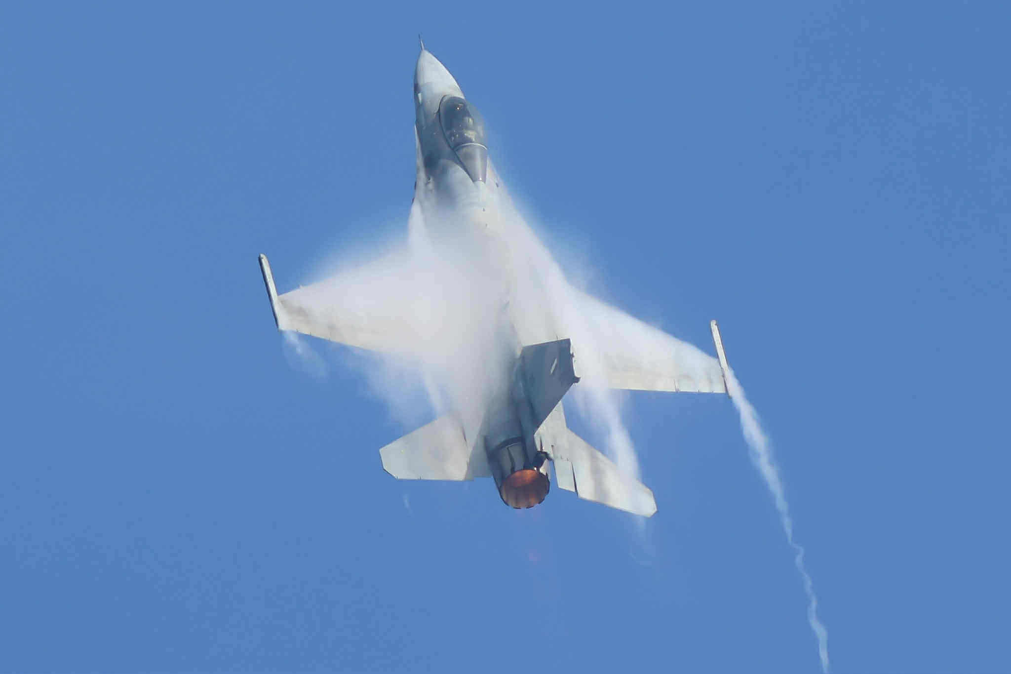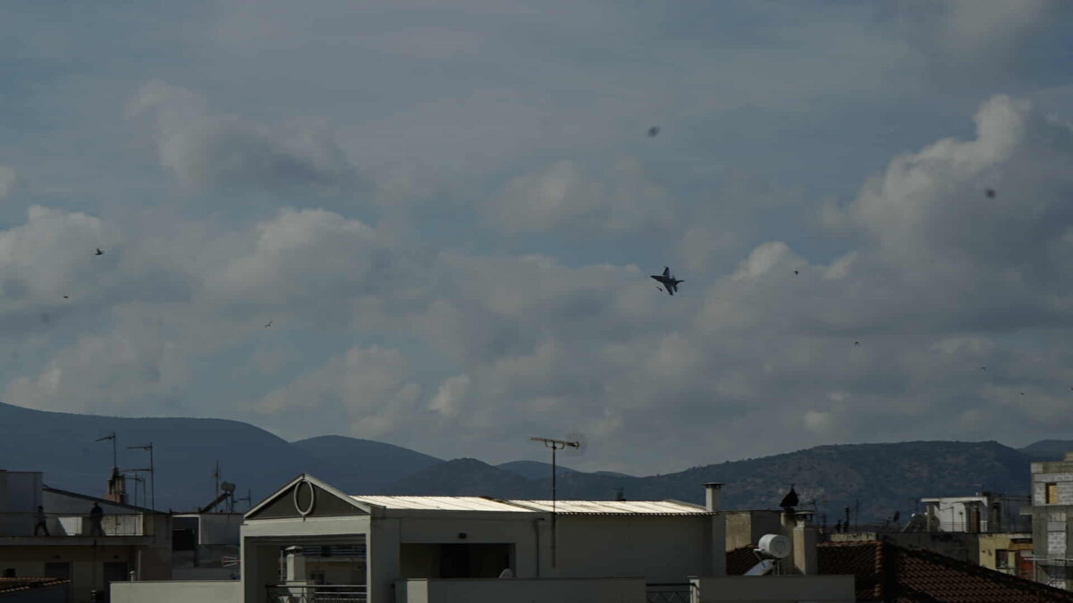 Οι μανούβρες του μαχητικού αεροσκάφους, οι ήχοι των κινητήρων και οι ακριβείς σχηματισμοί καθήλωσαν μικρούς και μεγάλους.